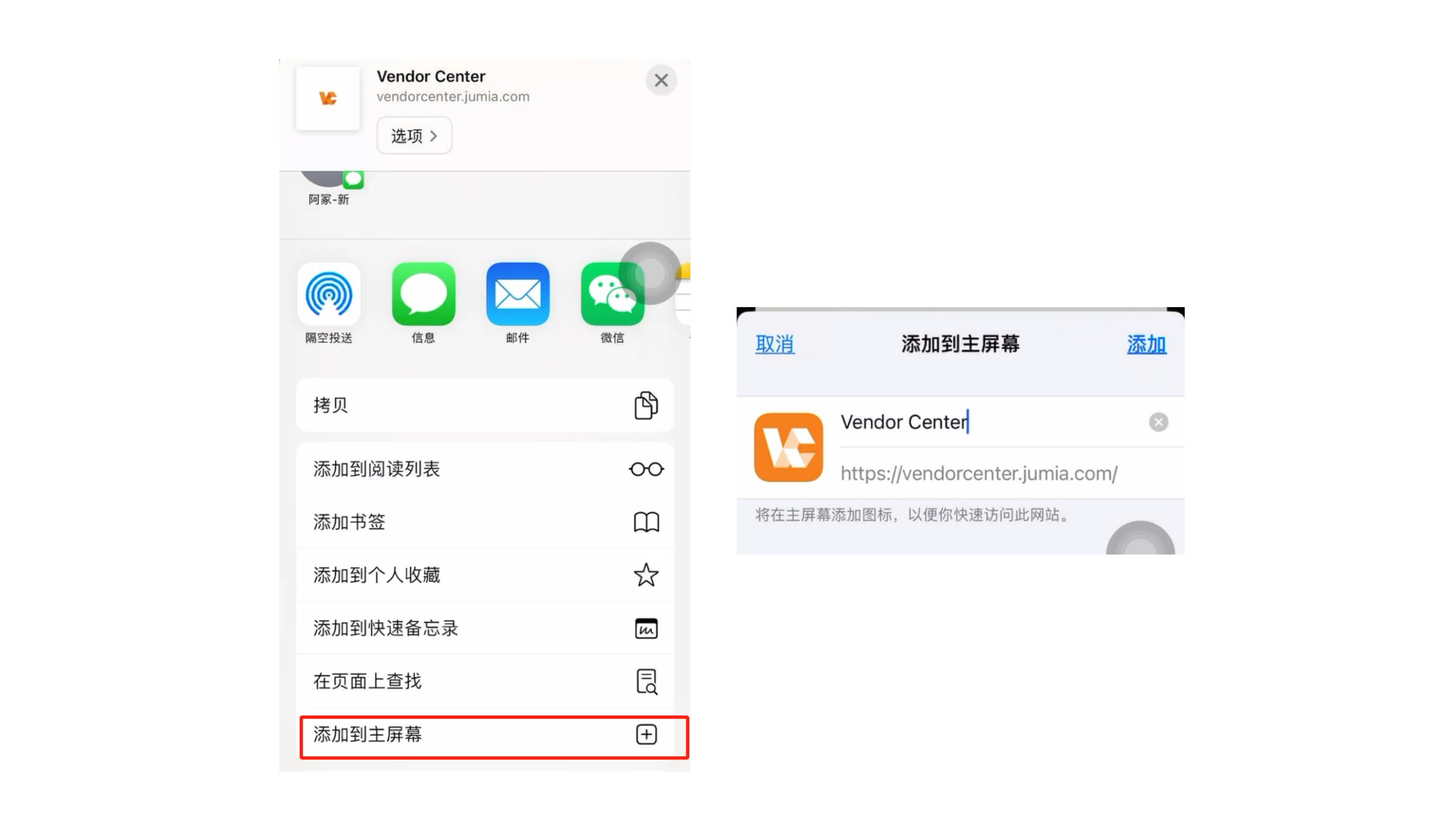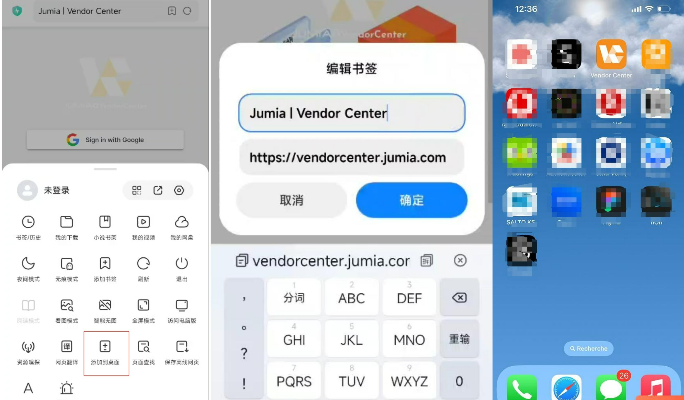 - 添加完成后可直接在手机页面看到Jumia Vedor center的图标。