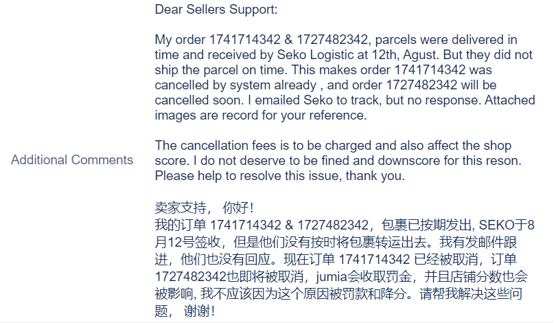 您的回复将促进Jumia卖家支持团队提供更好的支持。