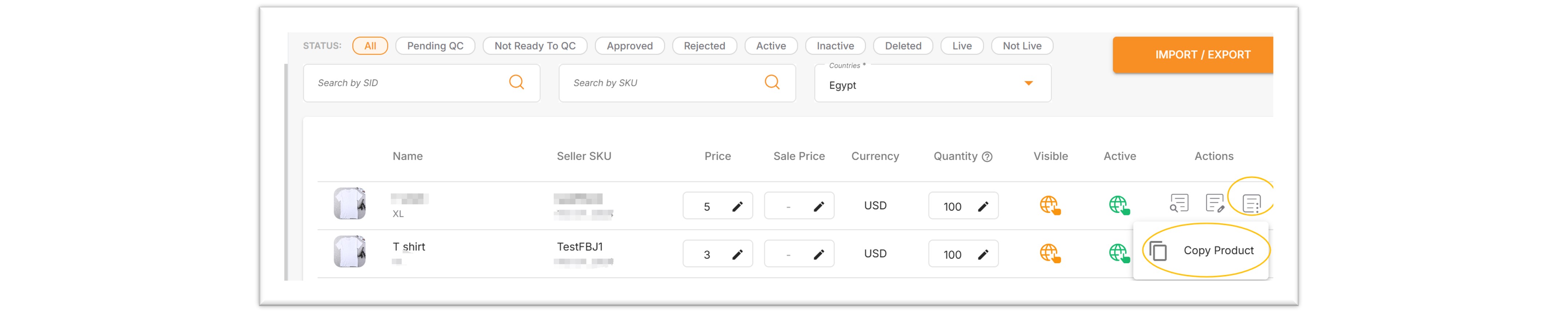 路径:Prodcut - ManagerProducts - ACtions - Copy product