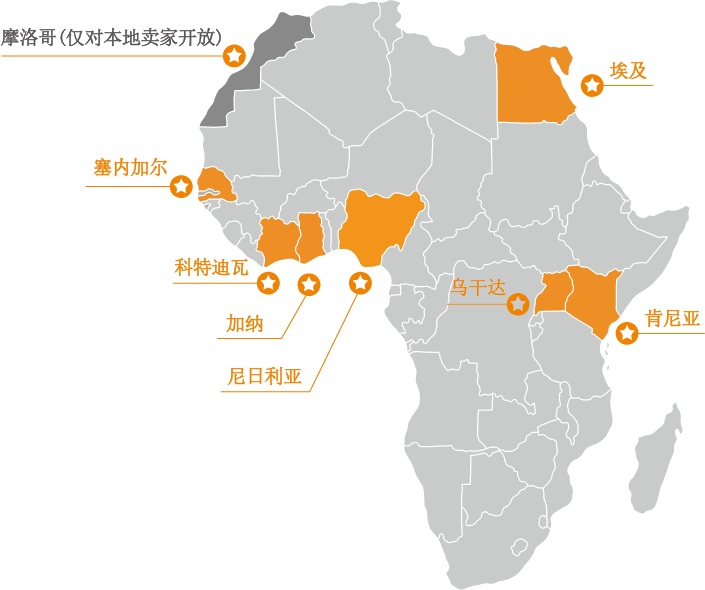 目前Jumia共有7个站点开放给中国卖家。