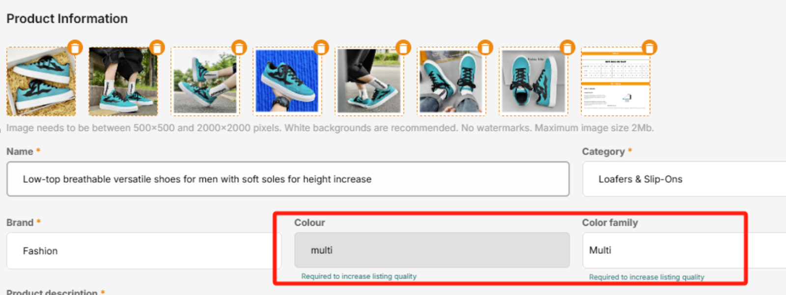 请注意,即使您为此类SKU选择“Multi”作为颜色和颜色系列,也不意味着您可以更改产品的实际颜色。创建产品时,请保留原始产品颜色,以免订单退货或误导客户。