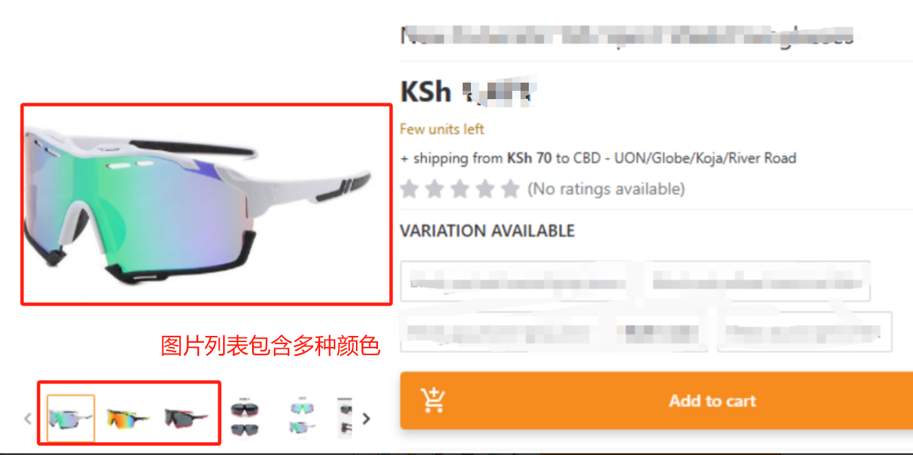 违规示例 3--图片列表包含多种产品颜色,混淆主图