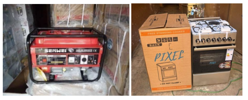 违规示例 5–产品背景杂乱(可见的仓库物品、纸箱或个人物品)。