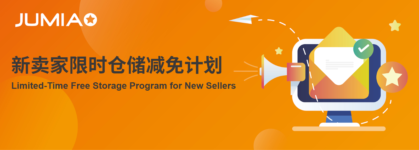 为鼓励各位新卖家启动JUMIA的海外仓业务,我们很高兴的宣布一项限时的仓储减免计划。对于所有满足此政策的新卖家,提供3个月的仓储减免。